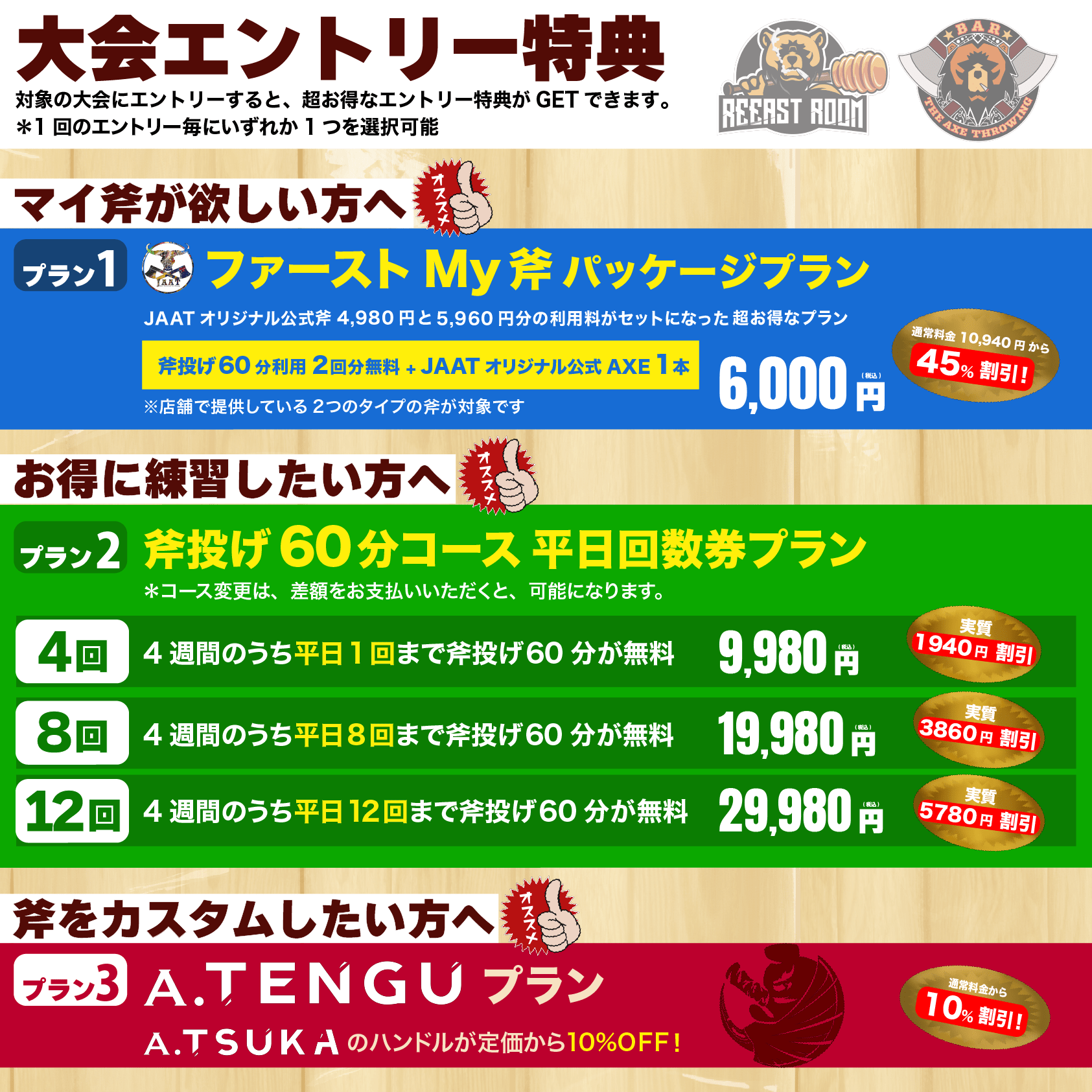 - 大会エントリー者限定特典の「パッケージプラン」及び「大会エントリー者特別プラン」の2つは利用可能